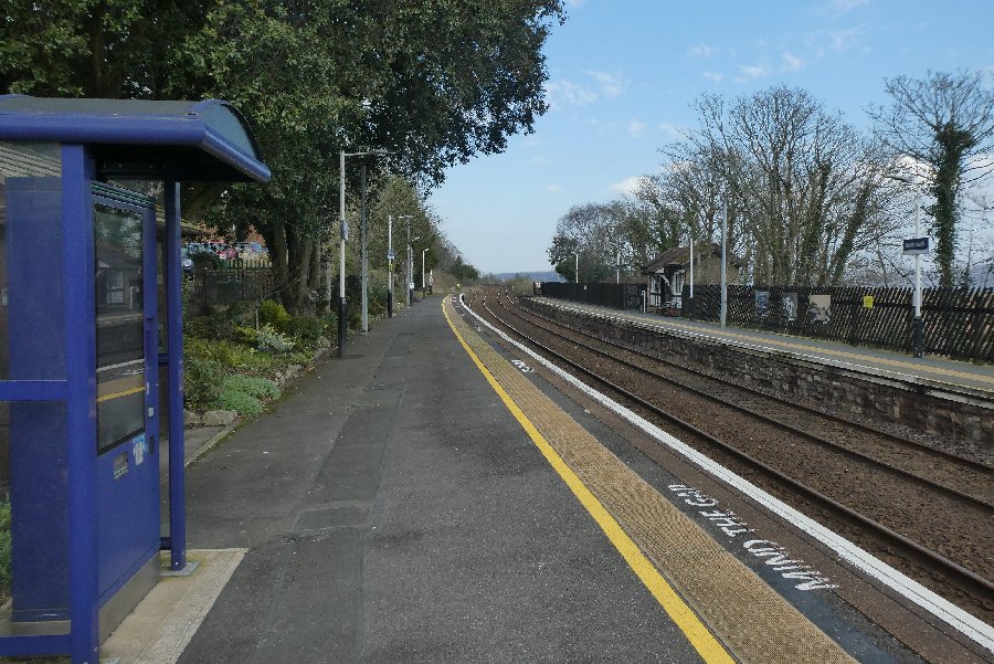 Across the railway line at Kents Bank Station, fairly high tide, Arnside Knott