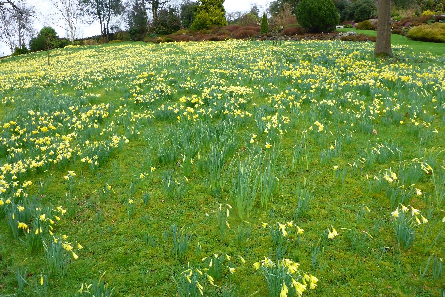 So many daffodils in the rain at Holehird Gardens
