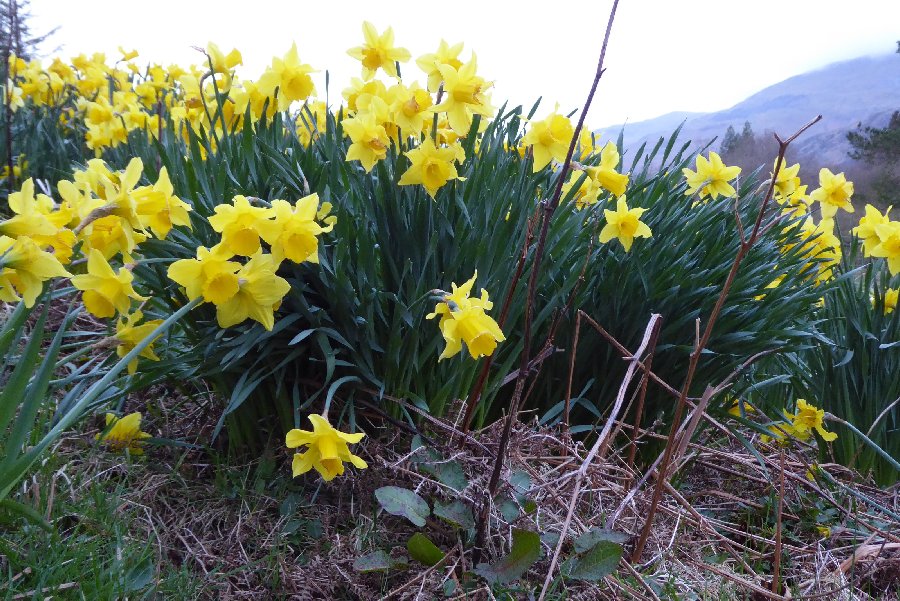 primroses and daffodils by the top car park