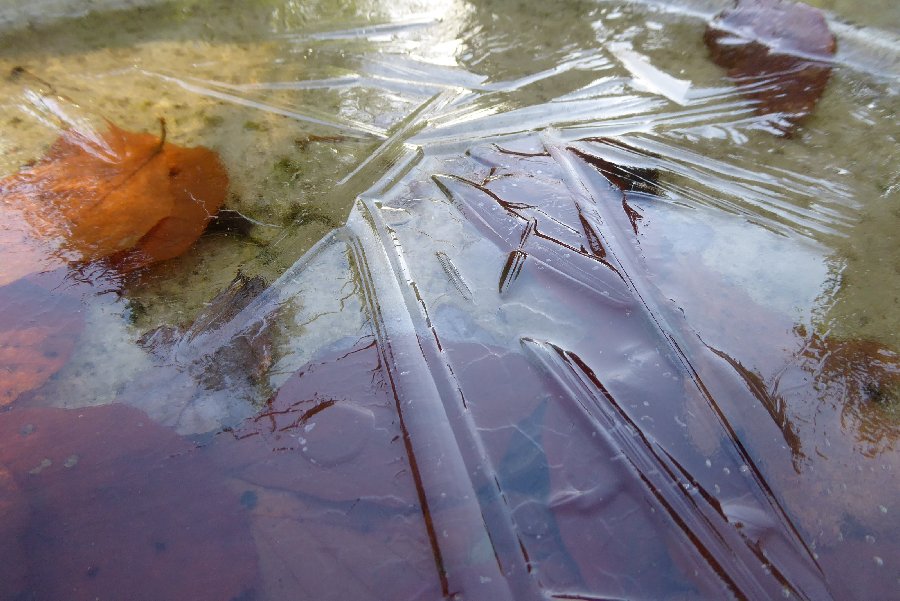 ice on a stone bird-bath, Beetham Nurseries