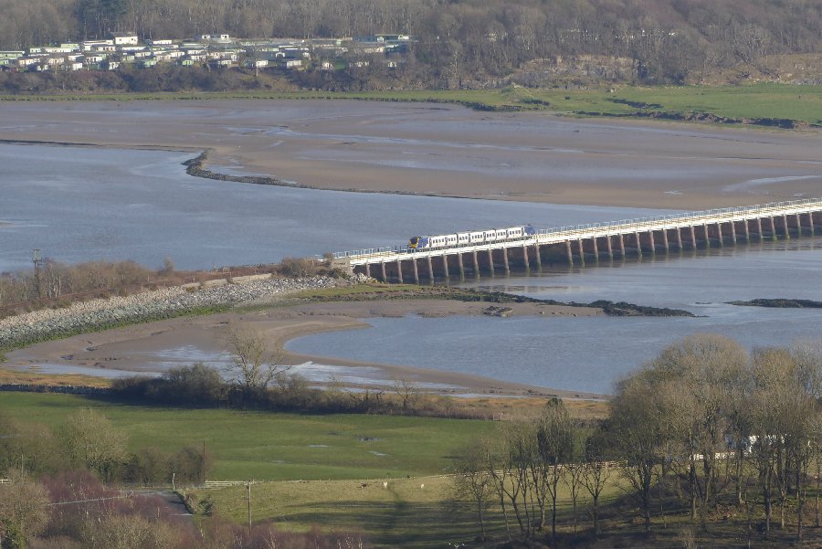 Barrow bound Northern train crossing the Leven Viaduct
