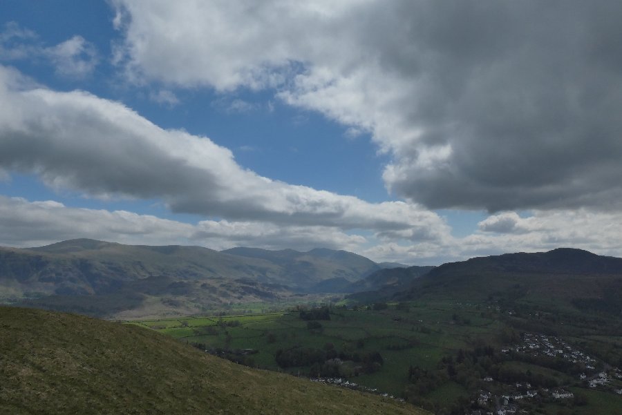 the Kentmere fells past all the dandelions